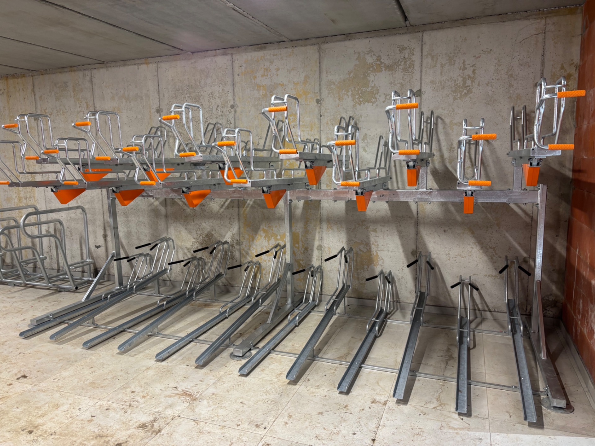 Fietsrekken, fietssteunen, dubbel niveau parkeersystemen, verticale fietsliften en toebehoren